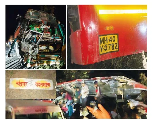 यवतामल/दि.5- तेज रफ्तार से दौड रहे ट्रक और बस के बीच जोरदार भिडंत हो गई. इस भीषण हादसे में 3 लोगों की मौत तथा 14 लोग घायल हो गए. यह घटना गुरूवार 4 दिसंबर के रात 8.20 बजे के दौरान वणी- यवतमाल राज्य मार्ग के जलका फाटा पर घटित हुई. दुर्घटना इतनी भीषण थी कि बस के दो टूकडे हो गए. और सामने का भाग पूरी तरह चकनाचूर हो गया. मृतकों के नाम लातूर जिले के अंकुलगा ग्राम निवासी नवनाथ शिवाजी काचे (30) और केलापुर तहसील के मंगी ग्राम निवासी भीमराव मरसकोल्हे (50) व एक अन्य हैं.