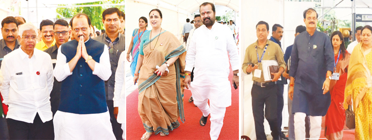 मुंबई/दि.10 – राज्य विधान मंडल के मुंबई में जारी पावस सत्र के दौरान अपने-अपने सदन के कामकाज में हिस्सा लेने जाते विधान परिषद सदस्य संजय खोडके, तथा विधानसभा सदस्य राजेश वानखडे व प्रवीण तायडे. राकांपा विधायक संजय खोडके आज अपने नेता व उपमुख्यमंत्री अजीत पवार के साथ विधान भवन पहुंचे. वहीं तिवसा क्षेत्र के भाजपा विधायक राजेश वानखडे पार्टी की तेजतर्रार नेत्री व विधायक चित्रा वाघ के साथ दिखाई दिए. साथ ही अचलपुर के भाजपा विधायक प्रवीण तायडे ने भी पार्टी के सहयोगी विधायकों के संग सदन के भीतर प्रवेश किया.
