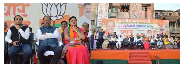अमरावती/दि.10 – स्थानीय प्रभाग क्र. 14 जवाहर गेट-बुधवारा में भाजपा प्रत्याशियों के प्रचार हेतु आज भाजपा के वरिष्ठ नेता व राजस्व मंत्री चंद्रशेखर बावनकुले की प्रमुख उपस्थिति में प्रचार सभा का आयोजन किया गया था. इस प्रभाग के भाजीबाजार परिसर में आयोजित प्रचार सभा में राज्यसभा सांसद डॉ. अनिल बोंडे, पूर्व सांसद नवनीत राणा, राज्य के गृह राज्यमंत्री डॉ. पंकज भोयर, भाजपा शहराध्यक्ष डॉ. नितिन धांडे व पूर्व जिलाध्यक्ष निवेदिता चौधरी सहित इस प्रभाग के भाजपा प्रत्याशी अविनाश देऊलकर, संगीता बुरंगे, गंगाताई खारकर, विवेक कलोती मंचासीन थे.