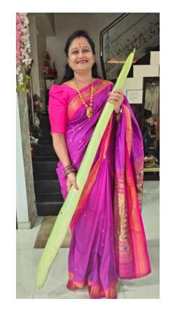 अमरावती/ दि. 10- पीडीएमसी प्रभाग की पूर्व नगर सेविका बीजेपी की शहर जिला उपाध्यक्ष सुरेखा दिगंबर लुंगारे का वृंदावन कॉलोनी निवासी पूर्व सैनिक मालोदे ने 5 फीट की 5 किलो वजनी लौकी(दूधी) देकर सत्कार किया. सुरेखा लुुंगारे को भी इतनी बडी लौकी देख आश्चर्य का सुखद झटका लगा. उन्होेंने मालोदे द्बारा घर में इतनी बडी लौकी उगाने के लिए उनका कौतुक किया.