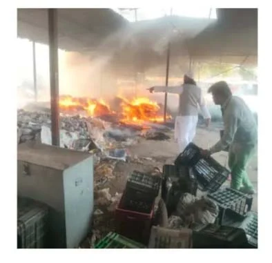 कॉटन मार्केट परिसर के फल बाजार में आग