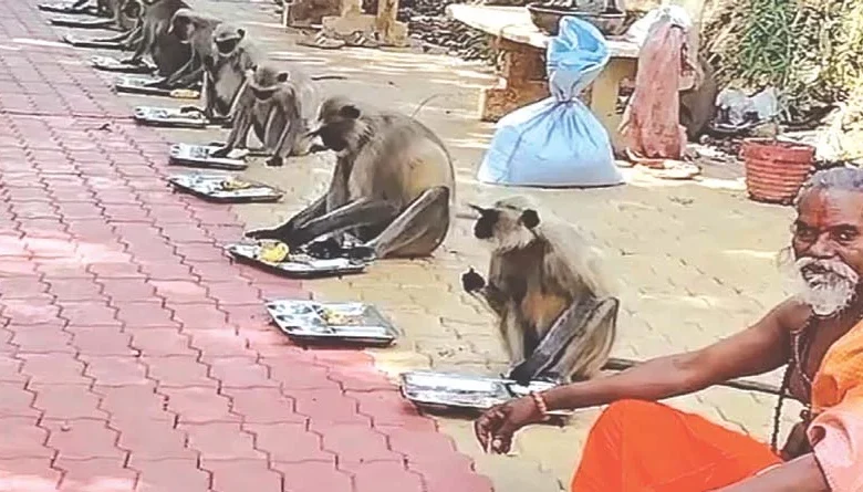 हनुमान जयंती पर वानरों की अनूठी पंगत
