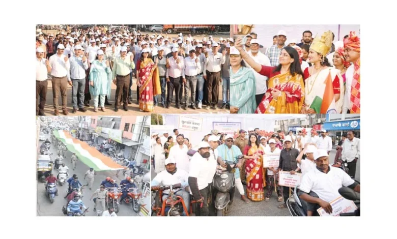 अमरावती/ दि. 11 – आगामी मनपा चुनाव 2025-26 की पार्श्वभूमि पर शहर के नागरिकों में मतदान के बारे में व्यापक जनजागृति निर्माण करने के उद्देश्य से अमरावती मनपा प्रशासन द्बारा आयोजित मतदान जनजागृति रैली 10 जनवरी को दोपहर 3 बजे दशहरा मैदान में बडे उत्साह के साथ रैली का आरंभ हुआ. दशहरा मैदान- राजापेठ- राजकमल चौक ऐसा रैली का मार्ग निश्चित किया गया था. यह रैली अनुशासनबध्द तथा शाांतिपूर्ण सपंन्न हुई.