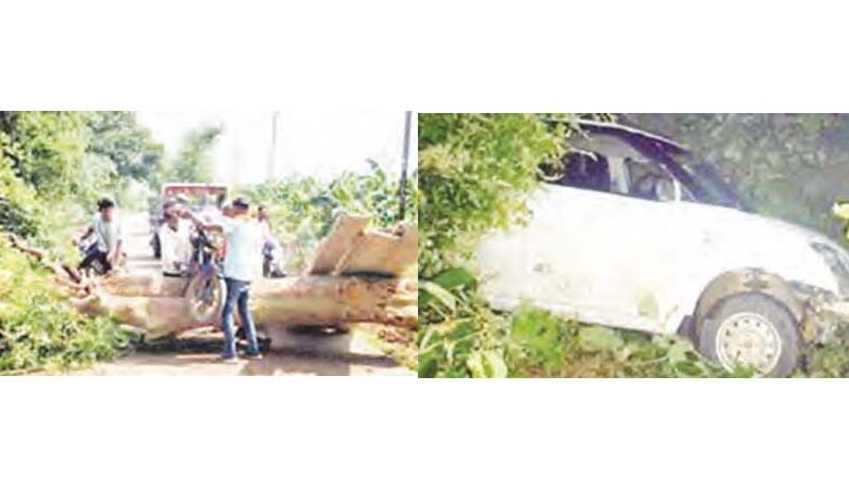दो बैल की भी गई जान अनेक मार्गों पर पेड गिरे