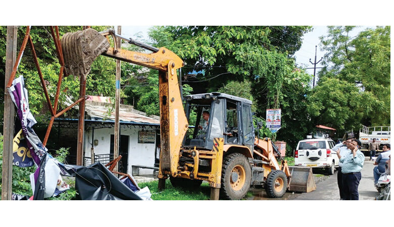 रविनगर मार्ग के होर्डिंग निकालने की मनपा द्बारा कार्रवाई