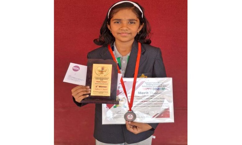 अमरावती/दि.11-छात्रों को प्रोत्साहित करने के उद्देश्य से हर साल राष्ट्रीय प्रतिभा शोध स्पर्धा का आयोजन किया जाता है. इस वर्ष आयोजित 14 वीं नॅशनल टैलेंट सर्च ड्रॉईंग अॅन्ड पेंटिंग कॉम्पिटिशन में अमरावती की अधिरा सुयोग तायडे ने सहभागी होकर तृतीय स्थान प्राप्त किया. अधिरा को मेडल, प्रशस्ती पत्र व गौरव चिह्न देकर सम्मानित किया गया. सेंट झेवियर्स कॅथ्रेडियल स्कूल की कक्षा 4 थी की वह छात्रा है. अधिरा की सफलता पर प्रिंसिपल फादर रमशीन, सिस्टर रेबेका, कक्षा अध्यापिका धनश्री, चित्रकला अध्यापिका रीनालिनी, सोनाली तायडे ने अभिनंदन किया.