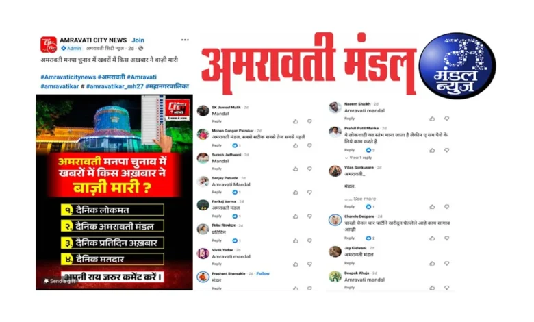 अमरावती /दि.24 – हाल ही में हुए महानगर पालिका के चुनाव में सबसे जबरदस्त, सबसे विश्वसनीय और सबसे तेज कवरेज किस अखबार का रहा, इस सवाल को लेकर अमरावती सिटी न्यूज नामक एक स्थानीय न्यूज चैनल द्वारा ऑनलाइन सर्वे कराया गया था. जिसमें नागरिकों के समक्ष ‘अमरावती मंडल’ सहित अन्य चार अखबारों के नामों का पर्याय दिया गया था. खास बात यह रही कि, इस सर्वे में शामिल हुए लगभग सभी ‘नेटीजन्स’ द्वारा ‘अमरावती मंडल’ के पक्ष में ही अपने मत दर्ज किए गए और ‘अमरावती मंडल’ को ही सबसे अधिक विश्वसनीय व सबसे तेज कवरेज वाला अखबार बताया. इसे दैनिक ‘अमरावती मंडल’ अपने लिए एक विशेष उपलब्धि की तरह मानता है. क्योंकि हर अखबार अपने-आप को ही सबसे विश्वसनीय और लोकप्रिय बताने का दावा करता है. लेकिन अमरावती मंडल को जनता की अदालत ने सिरमौर बनाते हुए सबसे जबरदस्त, सबसे विश्वसनीय और सबसे तेज कवरेज वाला अखबार बताया है.