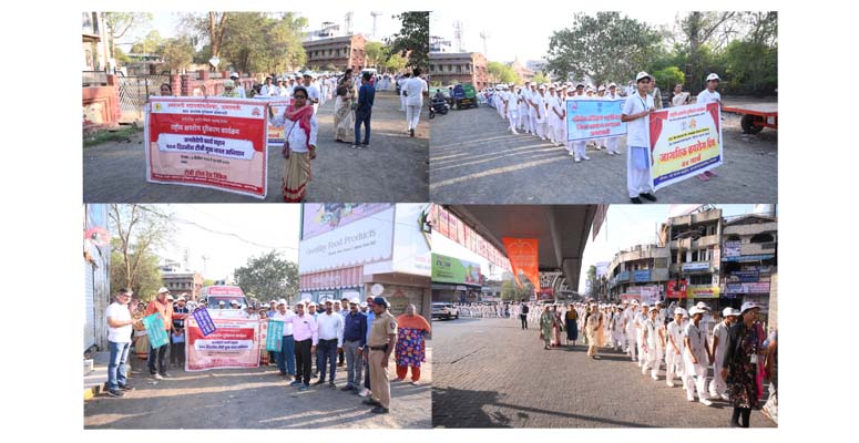 अमरावती/दि.25-आयुक्त राष्ट्रीय आरोग्य अभियान मुंबई के पत्र के तहत अमरावती महापालिका में 24 मार्च को विश्व क्षयरोग दिवस निमित्त जनजागृति रैली का आयोजन किया गया. सुबह 7 बजे नेहरू मैदान से क्षयरोग जनजागृति रैली की शुरुआत हुई. इस अवसर पर आयुक्त सचिन कलंत्रे, वैद्यकीय अधिकारी डॉ. विशाल काले, क्षयरोग अधिकारी डॉ. फिरोज खान, डॉ. संदीप पाटबागे ने हरी झंडी दिखाकर रैली की शुरुआत की. रैली में सार्वजनिक आरोग्य विभाग, शिक्षा विभाग, नर्सिंग कॉलेज ने सक्रिय सहभागिता दर्ज की. यह रैली नेहरू मैदान से शुरु होकर राजकमल चौक, जयस्तंभ चौक, से भ्रमण करते हुए नेहरू मैदान में पहुंचने में रैली का समापन किया गया.