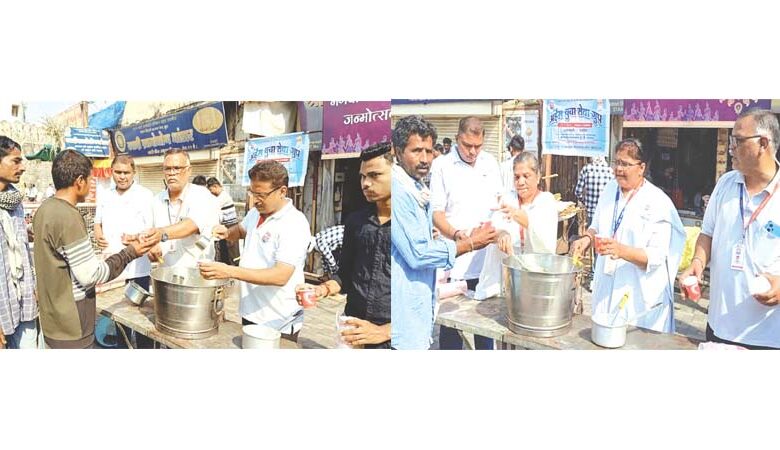 अमरावती/दि.12– भगवान महावीर जन्मोत्सव के पावन अवसर पर भगवान महावीर का संदेश सर्व जीव मम् जीव समान को आत्मसात करते हुए, राष्ट्रसंत परम गुरुदेव श्री नम्रमुनि महाराज साहेब की प्रेरणा से अर्हम युवा सेवा ग्रुप द्वारा गांधी चौक स्थित श्री चंद्रकांत भाई दामाणी के प्रतिष्ठान श्री अंबा स्टोर्स हैंडीक्राफ्ट सेंटर के प्रांगण से देवानुप्रिय निमिष भाई दामाणी की संपूर्णत: सुचारू व्यवस्था के प्रयास से अर्हम युवा सेवा ग्रुप द्वारा 333 ग्लास गन्ने के रस का वितरण मजदूरों और राहगीरों में किया गया.