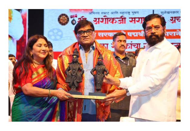 मुंबई./ दि. 7- महाराष्ट्र गौरव पुरस्कार प्राप्त मराठी रंगभूमि और फिल्मों के गत 4 दशकों से बडे नाम अशोक सराफ ने शिवसेना नेता एवं उप मुख्यमंत्री एकनाथ शिंदे की यहां एक भव्य समारोह में विलक्षण कला प्रेेेमी व्यक्तित्व के रूप में जमकर प्रशंसा की . पद्मश्री पुरस्कार प्राप्त होने उपलक्ष्य मराठी नाटय परिषद और बाल रंगभूमि परिषद द्बारा अशोक सराफ और प्रख्यात सुलेखनकार अच्युत पालव का सत्कार आयोजित किया गया. उस समय अशोक सराफ बोल रहे थे.