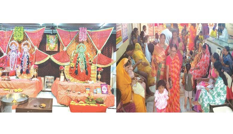 अमरावती /दि.3 – स्थानीय बच्छराज प्लॉट में श्री राणी सती कॉम्प्लेक्स स्थित एवं झुनझुनवाला ट्रस्ट द्वारा संचालित श्री लक्ष्मीनारायण-दुर्गा मंदिर में नवरात्रौत्सव पर्व निमित्त महाअष्टमी पर बडी धूमधाम के साथ कन्या पूजन व कन्या भोज का आयोजन किया गया. जिसमें शामिल कन्याओं का देवी भक्तों द्वारा पदप्रक्षालन करने के साथ ही बडे भक्तिभाव के साथ पूजन किया गया और बडी मनुहार के साथ उन्हें भोजन कराया गया. इससे पहले श्री लक्ष्मीनारायण एवं श्री दुर्गा देवी के विग्रहों का आकर्षक साज-श्रृंगार करने के साथ ही बडे भक्तिभाव के साथ पूजा-अर्चना की गई एवं भगवान को भोग व नैवेद्य अर्पित करते हुए सभी ने आरती में शामिल होने का लाभ लिया. जिसके उपरांत षोडशी कन्याओं को देवीस्वरुपा मानते हुए उनका पूजन कर उन्हें भोजन कराया गया. पश्चात सभी ने प्रसाद का लाभ लेते हुए अपने 9 दिवसीय व्रत की पारणा की. इस आयोजन में बडी संख्या में भाविक श्रद्धालुओं की उपस्थिति रही.