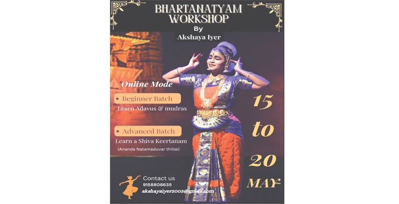 उक्ताशय की जानकारी देते हुए भरतनाट्यम कार्यशाला के आयोजकों द्वारा भारतीय शास्त्रीय नृत्य सीखने के इच्छुकों से आगामी 15 से 20 मई तक चलनेवाली इस ऑनलाइन वर्कशॉप में शामिल होने का आवाहन किया गया है.