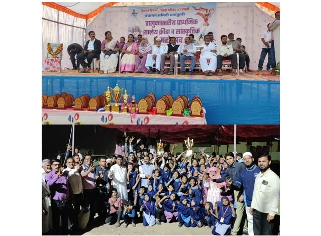 भातकुली/दि.5 -शिक्षा विभाग पंचायत समिती भातकुली अंतर्गत तालुकास्तरीय प्राथमिक शालेय क्रीडा व सांस्कृतिक महोत्सव का आयोजन जि.प.पूर्व माध्यमिक उर्दू शाला भातकुली मेें 2 व 3 जनवरी को आयोजित किया गया था. इस क्रीडा महोत्सव का पुरस्कार वितरण व समापन समारोह 3 जनवरी को संपन्न हुआ. दो दिवसीय शालेय क्रीडा महोत्सव में माध्यमिक व सर्वसाधारण विजेता पद भातकुली उर्दू शाला ने प्राप्त किया तथा प्राथमिक विभाग में जि.प.शाला आसरा ने और निदर्शना में जि.प.शाला म्हैसपूर ने प्रथम ट्रॉफी प्राप्त की.