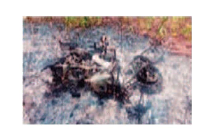 हादसे के बाद दुपहिया को लगी आग