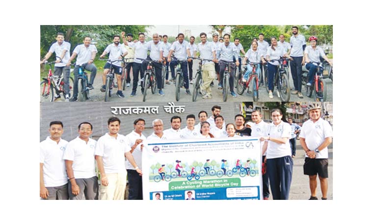 अमरावती/दि.9-रविवार, 8 जून को, आईसीएआई की अमरावती शाखा ने अपनी छात्र समिति के साथ मिलकर विश्व साइकिल दिवस के उपलक्ष्य में एक ऊर्जावान साइकिलिंग मैराथन का सफलतापूर्वक आयोजन किया. यह जीवंत कार्यक्रम आईसीएआई की कार्य-जीवन संतुलन को बढ़ावा देने वाली समिति के सम्मानित मार्गदर्शन में आयोजित किया गया था, जिसमें पेशेवरों और छात्रों के बीच शारीरिक फिटनेस और मानसिक स्वास्थ्य के महत्व पर जोर दिया गया.