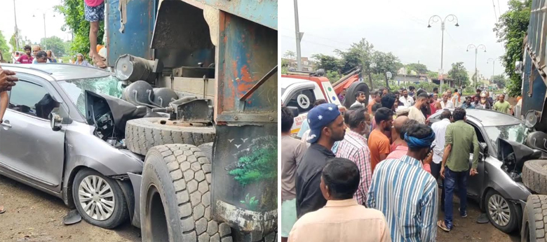 यशोदा नगर रोड पर कार की ट्रक को ठोस