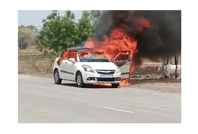 हिंगोली/दि.21-हिंगोली से कलमनुरी खानापुरचित्ता शिवार में हिंगोली शहर के चार लोग पानी पीने के लिए कार से उतरते ही कुछ देर में कार को अचानक आग लगी. इस घटना में सौभाग्य से चार लोगों की जान बच गई. तथा कार चालक विनायक सोलंके गंभीर रुप से घायल हुए है. उन्हें तुरंत उपचार के लिए हिंगोली के शासकीय अस्पताल में भर्ती किया गया. घटना में कार पूरी तरह से जलने से भारी नुकसान हुआ है. यह घटना मंगलवार 20 मई की दोपहर 12 बजे के करीब घटी. पुलिस के मुताबिक, औंढा नागनाथ तहसील के येहलेगांव सोलंके निवासी विनायक सोलंके 20 मई की सुबह हिंगोली से कार किराए से लेकर विवाह समारोह के लिए जा रहे थे. कार में हिंगोली शहर के गंगानगर की तीन महिला व एक बच्ची सवार थी. हिंगोली से लगभग 9 किमी दूरी पर जाने के बाद कार में सवार बच्ची को प्यास लगने से विनायक ने खानापुरचित्ता शिवार के एक होटल के सामने कार रोकी. जिसके बाद कार में सवार तीन महिला व बच्ची नीचे उतरे, लेकिन चालक विनायक कार में ही बैठे थे. इसी बीच कार की वायरिंग मं तकनीकी खराबी ओन से कार को अचानक आग लगी. विनायक सतर्क होकर कार से नीचे उतरे, लेकिन तब तक उनके हाथ और पैर को आग की लपटें लगने वे घायल हो गए. उन्हें उपचार के लिए शासकीय अस्पताल हिंगोली में भर्ती किया गया.