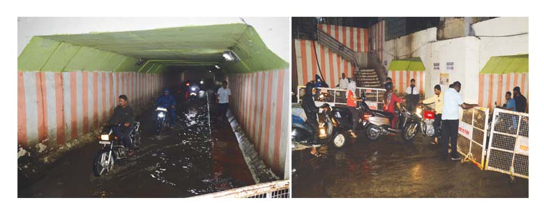 हर बार बारिश के दिनों में राजापेठ अंडरपास मार्ग पर जलजमाव हो जाता है. घुटनोंं तक पानी जमा हो जाने से यातायात पूरी तरह प्रभावित हो जाता है. हर साल की ऐसी परिस्थिति को देखते हुए भी इस पर स्थायी उपाययोजना नहीं की जा रही है. इस कारण हर वर्ष बारिश के दिनों में जलजमाव होने के बाद मनपा के दल द्बारा मोटर पंप से और सक्शन पंप वाहन से इस पानी को निकाला जाता है. इसके लिए कई घंटे लग जाते है और यातायात तब तक प्रभावित होता है.जल निकासी का प्रबंध ठिक तरह से न किए जाने के कारण हर बार यह परेशानी निर्माण होती है. पिछले पांच दिनों से अमरावती शहर में बारिश होते ही इस अंडरपास मार्ग पर जलजमाव हो जाता है तब एकतरफा मार्ग ही शुरू रखा जाता है. ऐसे में ट्रैफिक जाम होने के कारण नागरिकों को काफी परेशानी का सामना करना पडता है. यातायात पुलिस कर्मी भी घंटो तक अपना पसीना बहाते हुए यातायात सुचारू करने के लिए खडे रहते है. बुधवार 20 अगस्त को भी ऐसी परिस्थिति यहां देखी गई. बेरिकेट्स लगाकर राजापेठ की तरफ आनेवाले मार्ग को बंद कर दिया गया था और मनपा का दल मोटर पंप व सक्शन पंप वाहन लगाकर घुटनों तक जमा पानी निकालने के लिए मशागत कर रहा था. हर दफा बारिश के दिनों यही स्थिति निर्माण होने के बावजूद इसका स्थायी हल और उपाययोजना न किए जाने से नागरिकों को काफी परेशानी का सामना करना पडता है. आज सुबह से दोपहर तक ऐसी ही परिस्थिति रहने से आवाजाही में नागरिकों को काफी कठिनाईयों का सामना करना पडा. अनेक वाहन जलजमाव के कारण अंडरपास मार्ग पर बंद पड गए. जिससे काफी समय तक यातायात प्रभावित हुआ. संतप्त नागरिकों ने उचित उपाययोजना करने की मांग की है.