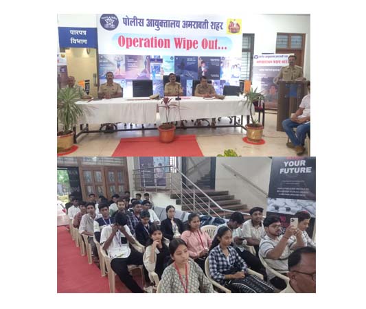 अमरावती /दि.14 – अमरावती शहर में विगत कुछ समय से नशे के सौदागरों द्वारा बडी तेजी के साथ अपने पांव पसारे जा रहे है, इस बात को ध्यान में रखते हुए शहर पुलिस आयुक्त अरविंद चावरिया ने व्यसनमुक्त शहर की संकल्पना साकार करने हेतु अमरावती शहर पुलिस आयुक्तालय क्षेत्र अंतर्गत ऑपरेशन वाईप आऊट नामक मुहिम चलानी शुरु की है. जिसके तहत आज पहले दिन शहर पुलिस आयुक्तालय में कई शालेय व महाविद्यालयीन छात्र-छात्राओं को आमंत्रित कर उन्हें नशे के दुष्परिणामों के बारे में बताया गया तथा नशे से दूर रहने के बारे में मार्गदर्शन भी किया गया.