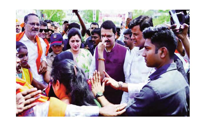 नवाथे चौक पर सीएम फडणवीस का जंगी स्वागत