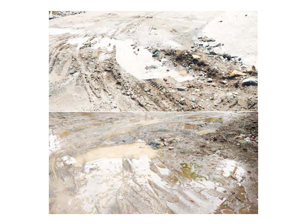 शहर में रास्तों पर जगह-जगह पर कीचड़ और गड्ढे