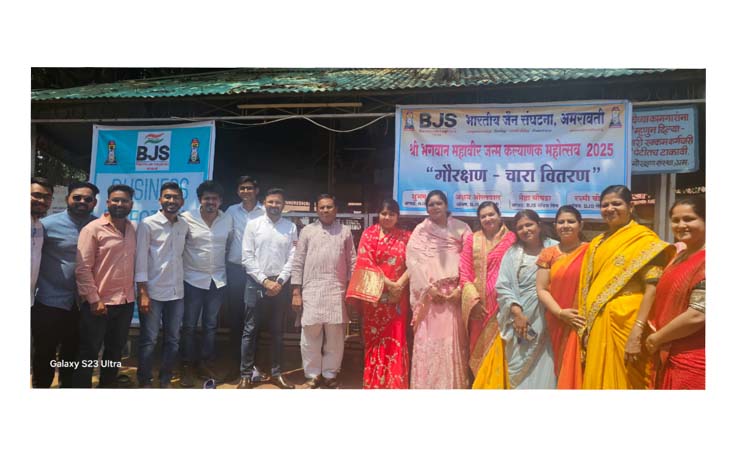 अमरावती/दि.25-भगवान महावीर जयंती के पावन अवसर पर भारतीय जैन संघटना (बीजेएस) अमरावती एवं बीजेएस लेडीज विंग के संयुक्त तत्वावधान में गौ चारा वितरण कार्यक्रम का आयोजन गौरक्षण संस्था, अमरावती में सफलतापूर्वक संपन्न हुआ. इस आयोजन का उद्देश्य गौ माता के प्रति श्रद्धा, सेवा और संरक्षण के भाव को जन-जन तक पहुंचाना था. कार्यक्रम का समुचित निर्देशन प्रकल्प प्रमुख सुयश जैन द्वारा किया गया, जबकि कार्यक्रम का संचालन बीजेएस लेडीज विंग की सचिव रश्मी चोपड़ा ने किया. इस अवसर पर ओसवाल जैन संघ अमरावती के अध्यक्ष संजय आचालिया मुख्य अतिथि के रूप में उपस्थित रहे. कार्यक्रम में बीजेएस अध्यक्ष शुभम जैन, सचिव अक्षय ओस्तवाल, लेडीज विंग की अध्यक्ष नेहा चोपड़ा, सचिव रश्मी चोपडा प्रमुखता से उपस्थित थे. साथ ही बीजेएस के उपाध्यक्ष नितेश सावला और नितेश गांग, कोषाध्यक्ष श्रेणिक बोथरा, सह- सचिव विपिन निब्जिया, सह-कोषाध्यक्ष शुभम शाह सहित कई गणमान्य कार्यकारी सदस्य उपस्थित रहे. अन्य प्रमुख सदस्यों में सुयश जैन, अक्षय बरडिया, आर्यन आचालिया, अंकश चोरड़िया, रौनक खिवसरा, राहुल गांधी, अर्पित भंसाली एवं जिनेश सामरा व बीजेएस अमरावती व बीजेएस लेडीज विंग की पूरी टीम उपस्थित थी.