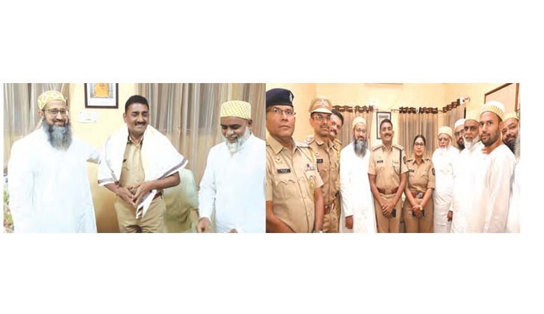 अमरावती/ दि. 6– नये पुलिस आयुक्त अरविंद चावरिया गत रात सराफा स्थित दाउदी बोहरा समाज की मस्जिद में आमिल साहब शेख मुर्तुजा भाई मदारवाला से मिले. इस समय डीसीपी गणेश शिंदे, डीसीपी कल्पना बारवकर, एसीपी जयदत्त भंवर, खोलापुरी गेट के थानेदार गौतम भी सीपी चावरिया के संग थे. सीपी ने बोहरा समाज की अनुशासित और शांतिप्रिय जमात के रूप में प्रशंसा की.