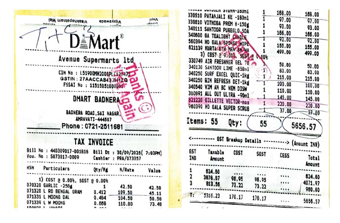 अमरावती/दि.1 – केंद्र सरकार द्वारा सभी उपभोक्ता उत्पादों पर जीएसटी की दरों में कटौती किए जाने और जीएसटी की नई दरे लागू करने के बावजूद स्थानीय बडनेरा रोड स्थित डी-मार्ट में प्रत्येक वस्तू पर जीएसटी की पुरानी दरे ही लगाकर ग्राहकों से भुगतान प्राप्त किया जा रहा है, यह सीधे-सीधे आम उपभोक्ताओं के साथ होनेवाली आर्थिक लूट है. अत: इस मामले की सघन जांच करते हुए डी-मार्ट के खिलाफ आवश्यक कार्रवाई की जानी चाहिए, इस आशय की मांग शहर के वरिष्ठ विधिज्ञ एड. मंगेश भागवत द्वारा जिला आपूर्ति अधिकारी को सौंपे गए पत्र में की गई है.