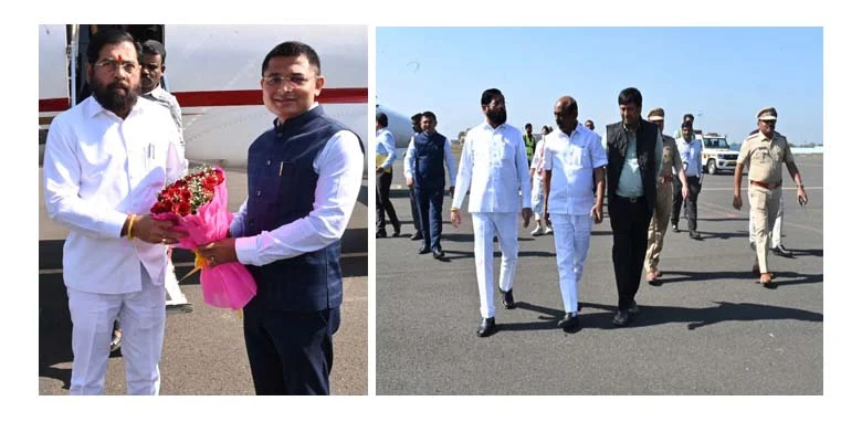 अमरावती/दि.18- उप मुख्यमंत्री और शिवसेना शिंदे गट के सर्वेसर्वा एकनाथ शिंदे का आज पार्टी के उम्मीदवारों हेतु प्रचारार्थ अंजनगांव आगमन हुआ. अमरावती विमानतल पर उनके पधारते ही जिलाधीश आशीष येेरेकर ने उनका पुष्पगुच्छ देकर स्वागत किया.