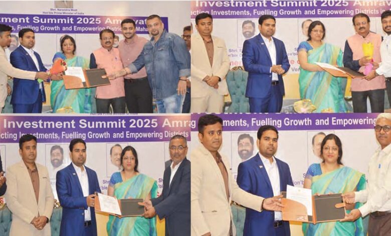 अमरावती – जिले में उद्योगों को बढावा देने के लिए आयोजित क्षेत्रीय निवेश सम्मेलन में 70 से अधिक एमओयू किए गये. प्रमुख उद्यमियों का अनुबंध उपलक्ष्य सत्कार करती विभागीय आयुक्त श्वेता सिंघल और जिलाधीश सौरभ कटियार. एमआयडीसी असो. के अध्यक्ष किरण पातुरकर, डीआईसी के महाप्रबंधक नीलेश निकम प्रमुखता से उपस्थित थे.