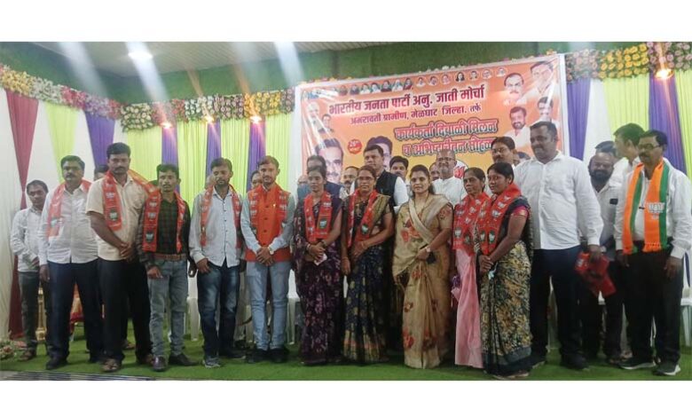 अंजनगांव सूर्जी/दि.30 – आगामी स्थानीय स्वराज्य संस्थाओ के चुनाव को लेकर भारतीय जनता पार्टी का कार्य जोरो-शोरो से शुरू हो चुका हैं. इसी पार्श्वभूमि पर 26 अक्तूबर को भारतीय जनता पार्टी अनुसूचित जाती जमाती मोर्चा मेलघाट, अंजनगांव सूर्जी की ओर से स्थानीय पटेल मंगल कार्यालय में भारतीय जनता पार्टी मेलघाट ग्रामीण जिलाध्यक्ष प्रभुदास भिलावेकर की अध्यक्षता मेंं दीपावली मिलन समारोह तथा डॉ. विलास कविटकर व राजेंद्र रेखाते का अभिष्टचिंतन समारोह आयोजित किया गयाा था. इस दौरान शहर के सुपरिचित इतिहास लेखक, योग-निसर्गोपचार तज्ञ सामाजिक कार्यकर्ता एवं मानव सेवा विकास फाउडेशन के अध्यक्ष डॉ. नंदकिशोर पाटिल ने अपने 27 कार्यकर्ताओ सहित भारतीय जनता पार्टी मेंं प्रवेश लिया.