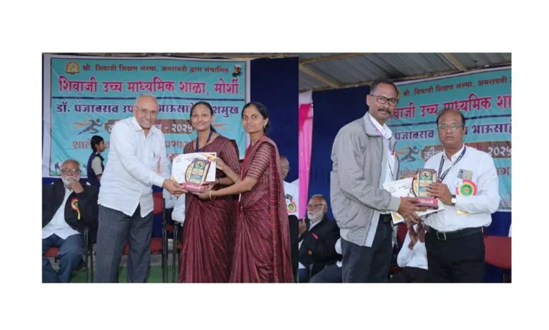 मोर्शी /दि.16 – श्री शिवाजी शिक्षण संस्था अमरावती द्वारा संचालित स्थानीय शिवाजी माध्यमिक शाला में दो दिवसीय डॉ. पंजाबराव देशमुख क्रीडा महोत्सव का हाल ही में समापन किया गया. 14 व 15 दिसंबर को संपन्न हुई क्रीडा स्पर्धा में मोर्शी, वरुड व चांदुर बाजार तहसील की 14 शालाओं ने सहभाग लिया.