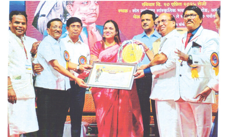 अमरावती/दि.24- एकता रैली आयोजन समिति की तरफ से डॉ. बाबासाहब आंबेडकर जयंती निमित्त आयोजित कार्यक्रम में विविध स्तर पर सामाजिक सेवा देने वाले मान्यवरों का सत्कार किया गया. इसमें अमरावती की विख्यात स्त्री रोग व कर्करोग तज्ञ डॉ. भावना सोनटक्के (कासट) को विश्वरत्न डॉ. बाबासाहब आंबेडकर वैद्यकीय सेवारत्न पुरस्कार से सम्मानित किया गया है.