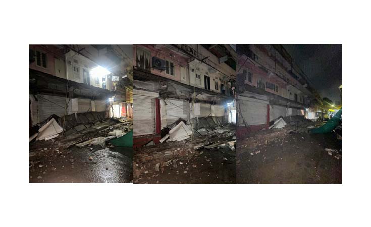 लगातार बारिश के कारण सतीधाम मार्केट का छज्जा ढहा