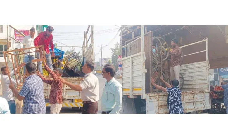 अमरावती/दि.21 – आए दिन अमरावती मनपा क्षेत्र में अतिक्रमण निर्मूलन की कार्रवाई जारी रहने के बावजूद हाथगाडी वाले फुटपाथों पर अपनी गाडियां खडी कर यातायात में दुविधा निर्माण कर रहे है. साथ ही अनेक दूकानदार अपने दुकानों का सामना बाहर फुटपाथों पर रखते हैैं. चेतावनी के बावजूद यह सिलसिला जारी रहने से गुरूवार 20 नवंबर को मनपा तोडू दस्ते के प्रमुख योगेश कोल्हे के मार्गदर्शन में चौधरी चौक से इतवारा बाजार समेत कोतवाली थाना क्षेत्र में अतिक्रमण निर्मूलन की कार्रवाई की गई. इस कार्रवाई के दौरान दो ट्रक साहित्य जब्त किया गया.