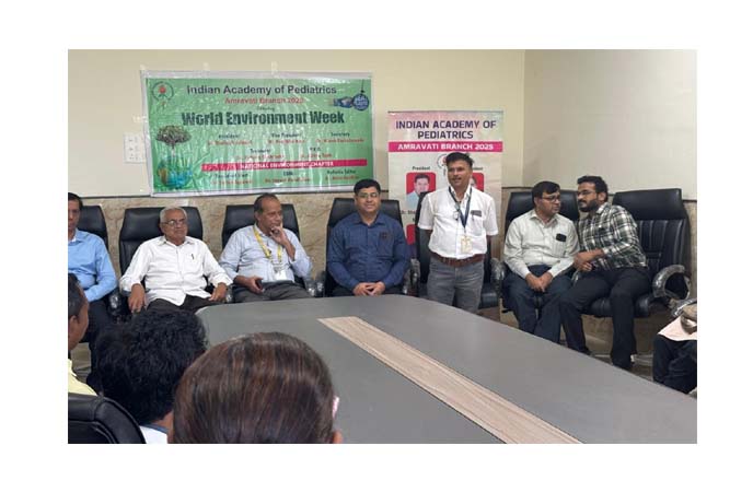अमरावती /दि.10– स्थानीय जिला स्त्री रुग्णालय में आईएपी अमरावती शाखा द्वारा नर्सिंग छात्राओं के समक्ष पर्यावरण सप्ताहनिमित्त मार्गदर्शन सत्र आयोजित किया गया. इसमें मुख्य अतिथि आईएपी विदर्भ शाखा के अध्यक्ष डॉ. सतीश तिवारी, केंद्रीय आईएपी के पर्यावरण समूह के आगामी अध्यक्ष डॉ. सतीश अग्रवाल, अस्पताल के अधिष्ठाता डॉ. अरुण सालुंखे, आईएपी अमरावती के भूतपूर्व अध्यक्ष पीएम पाटिल, डॉ. रिषिकेश नागलकर, डॉ. प्रीति इंगले उपस्थित थे.