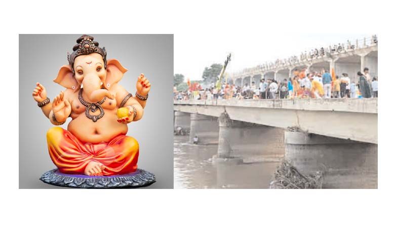 दर्यापूर/दि. 12 – तहसील के टाकली पूर्णा स्थित पूर्णा घाट पर नदी के छोटे पुल से शनिवार से सोमवार तक छोटी बडी श्रीगणेश मूर्तियों का विसर्जन क्रेन द्वारा किया गया. जिसमें दर्यापुर, मुर्तिजापूर और अंजनगांव इन तीन तहसीलों से आए सार्वजनिक मंडलों के 150 से अधिक बडी गणपति मूर्तियों तथा 4 हजार से अधिक घरेलु गणेश मूर्तियों का समावेश रहा. हजारों गणेश भक्तों कि उपस्थिती में बाप्पा कों बिदाई दी गई.