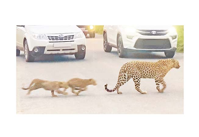 कैम्प परिसर में बच्चों के साथ दिखी मादा तेंदुआ