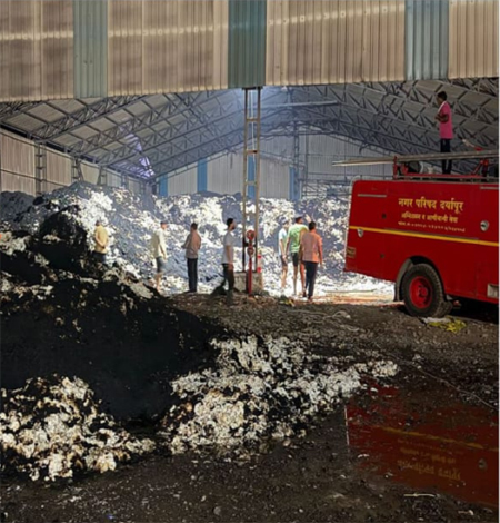 दर्यापुर/दि.29 – स्थानीय सामदा मार्ग पर सूतगिरणी के पास स्थित गजानन कॉटन इंडस्ट्रीज में गुरुवार की रात 11 बजे के आसपास आग लगी. जिसमें लाखों रुपयों का कपास जलकर लगभग पूरी तरह से खाक हो गया. इस अग्निकांड में 80 लाख रुपए का नुकसान होने का प्राथमिक अनुमान संचालक आशीष साबले द्वारा जताया गया. जिनकी सूचना पर अग्निशमन दल ने तुरंत मौके पर पहुंचकर आग पर काबू पाया. इस आग को बुझाने हेतु दर्यापुर व अंजनगांव नगर परिषद से अग्निशमन वाहनों को बुलाया गया था.