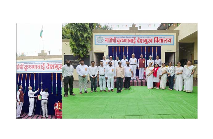मातोश्री कृष्णाबाई देशमुख विद्यालय में चंद्रशेख देशमुख के हाथों ध्वजारोहण