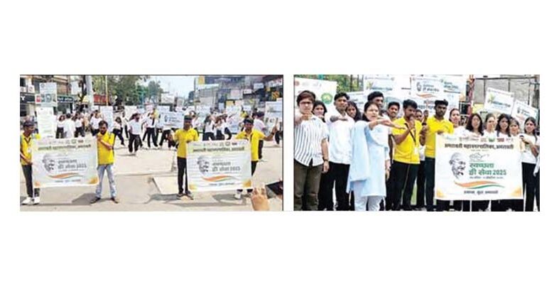 अमरावती/ दि. 25 – शहर में स्वच्छता के प्रति जागरूकता बढाने के लिए अमरावती मनपा और यंग मार्वल सर्विसेज एलएलपी के सहयोग से 22 सितंबर को राजकमल चौक पर एक प्रभावी फ्लैश मॉब का आयोजन किया गया. कार्यक्रम का मुख्य उददेश्य शहर के नागरिकों को स्वच्छता के महत्व से अवगत कराना और स्वच्छता अभियान में अधिकाधिक जन भागीदारी प्राप्त करना था. कार्यक्रम में युवा स्वयंसेवकों ओर कर्मचारियों नेे कचरा पृथाक्करण, स्वच्छता संबंधी आदतों और सार्वजनिक स्थानों पर स्वच्छता बनाए रखने के महत्व को प्रभावी ढंग से प्रस्तुत किया. कार्यक्रम में अमरावती मनपा की अतिरिक्त आयुक्त शिल्पा नाइक उपस्थित थी. मनपा के अन्य अधिकारियों और कर्मचारियों ने भी इस कार्यक्रम में भाग लिया.उपस्थित नागरिकों ने युवा स्वयंसेवकों की प्रेरक प्रस्तुति का उत्साहपूर्वक समर्थन किया.