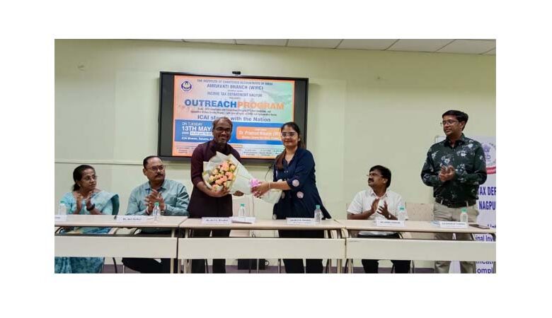 अमरावती/ दि. 21– आईसीएआई की डब्ल्यूआईआरसी की अमरावती सीए शाखा ने आयकर विभाग, नागपुर के सहयोग से अमरावती में सीए शाखा परिसर में एक आउटरीच कार्यक्रम का सफलतापूर्वक आयोजन किया. इस कार्यक्रम में मुख्य अतिथि के रूप में आयकर (आई एंड सीआई), नागपुर के निदेशक डॉ. प्रमोद निकलजे (आईआरएस) की उपस्थिति रही. कार्यक्रम की शुरुआत अमरावती शाखा की अध्यक्ष सीए दिव्या त्रिकोटी के गर्मजोशी भरे स्वागत और उद्घाटन भाषण से हुई, जिन्होंने प्रभावी अनुपालन सुनिश्चित करने में कर पेशेवरों और आयकर विभाग के बीच सहयोगात्मक प्रयासों के महत्व पर जोर दिया.