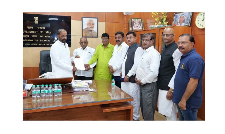 अमरावती/दि.3-ओबीसी समाज की विभिन्न मांगों को लेकर ओबीसी महासंघ के राष्ट्रीय अध्यक्ष डॉ. प्रा. बबनराव तायवाडे के नेतृत्व में 3 अप्रैल को केंद्रीय पिछडावर्ग आयोग अध्यक्ष व पूर्व केंद्रीय गृहराज्य मंत्री हंसराज अहिर को नई दिल्ली में ज्ञापन सौंपा गया. इस समय राष्ट्रीय ओबीसी महासंघ के राष्ट्रीय महासचिव सचिन राजुरकर, राष्ट्रीय ओबीसी किसान महासंघ के राष्ट्रीय अध्यक्ष प्रकाश साबले, राष्ट्रीय ओबीसी महासंघ के महाराष्ट्र के प्रदेश अध्यक्ष प्रकाश भागरथ व अन्य पदाधिकारी उपस्थित थे.