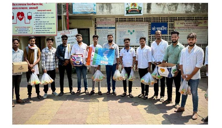 अमरावती/दि.9-नॅशनल स्टूडेंट युनियन ऑफ इंडिया (एन.एस.यू.आय.) के वर्धापनदिन निमित्त 9 अप्रैल को अमरावती शहर के जिला सामान्य अस्पताल में एक सामाजिक उपक्रम लिया गया. एन.एस.यू.आय. के पदाधिकारी व कार्यकर्ताओं ने अस्पताल के मरीज और उनके परिजनों को फलों का वितरण किया. एन.एस.यू.आय. यह भारतीय राष्ट्रीय कांग्रेस की विद्यार्थी संगठन होकर 9 अप्रैल को उसकी स्थापना हुई थी. संगठन के वर्धापन दिन निमित्त आयोजन इस उपक्रम द्वारा मरीजों को आधार देने व उनके स्वास्थ्य के प्रति संवेदनशीलता दिखाने का प्रयास किया गया. कार्यक्रम में एन.एस.यू.आय के जिलाध्यक्ष संकेत कुलट, तथा उनके सहयोगी स्थानीय पदाधिकारी और कार्यकर्ता बडी संख्या में उपस्थित थे. फल वितरण दौरान मरीजों से संवाद किया गया. इस समय एन.एस.यू.आय. के जिला अध्यक्ष संकेत कुलट, वेदांत साखरे, नीरज कोकाटे, स्वराज पोटे, निशांत पवार, अभिषेक भोसले, क्रिश भिसणे, अजिंक्य धवणे, अभि गावनेर, आदित्य खैरकर, अनुप पुंड, आयुष निर्मल, जय सागले, तिरंग भोसले, रोशन पवार आदि उपस्थित थे.