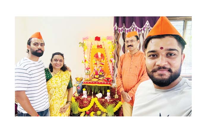अमरावती– बीजेपी नेत्री गंगा खारकर के खोलापुरी गेट निवास पर बुधवार को उत्साह से श्री की स्थापना की गई. इस समय उपस्थित खारकर परिवार.