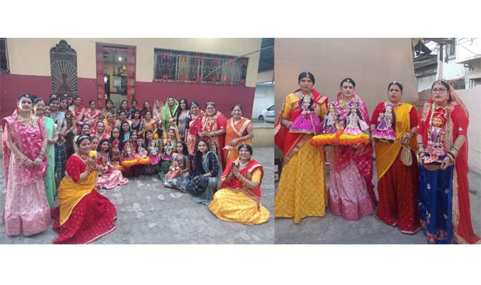 अमरावती / दि. 26– गणगौर बिंदोरे के आयोजन की कडी में मंगलवार शाम जवाहर गेट क्षेत्र में राजस्थानी युवतियों ने बडे ही उत्साह से बाजे गाजे के साथ सजधज कर राम प्यारी मंदिर से बिंदोरा निकाला. जो क्षेत्र के लोगों और व्यापारियों को आकर्षित कर गया. सभी को राजस्थान में होने का अहसास हुआ. वातावरण में गणगौर के गीत गूंज उठे थे. ‘कठे सु आई गौरा, कठे सु आयो ईसर, , कठे सु आई री मैया थाने पूजन वाली, हिमालय सु आई गौरा, कैलाश सु आयो ईसर, जवाहर गेट सु आई रे मैया थाने पूजन वाली’ और अन्य की उल्लास, उमंग से गाये गये. ईसर और गौरा की प्रतिमाएं लेकर सजी हुई लोटियों के संग युवतियों ने घूमर व अन्य नृत्य कर आनंद व्यक्त किया.