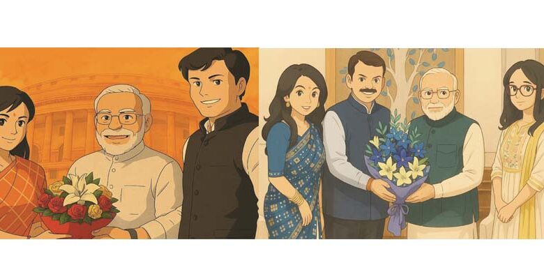 अंबाडा/दि.31-इन दिनों सोशल मीडिया पर ‘स्टूडियो घिब्ली’ की अनोखी शैली में तैयार की गई तस्वीरों का ट्रेंड तेजी से बढ़ रहा है. इंस्टाग्राम, फेसबुक और व्हाट्सऐप जैसे सोशल मीडिया प्लेटफॉर्म पर युवा इस ट्रेंड में बड़ी संख्या में शामिल हो रहे हैं. खास बात यह है कि मुख्यमंत्री, सांसद, विधायक, राजनीतिक पदाधिकारी जैसे नेताओं की तस्वीरें भी इस शैली में बदलकर वायरल की जा रही हैं.