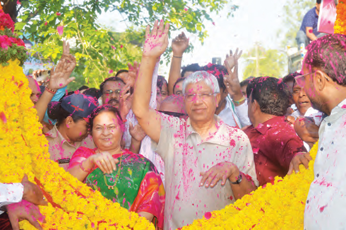 खोडके को जुलूस के रूप में मॉडल स्टेशन से उनके डेपो रोड स्थित जनसंपर्क कार्यालय लाया गया. वहां डीजे की धुन पर सभी समर्थकों के साथ खोडके भी थिरके, इस दौरान गुलाल और गुलाब की पंखुडियों की वर्षा होती रही. उल्लेखनीय है कि संजय खोडके और सुलभा खोडके का स्वागत करने के लिए बडी संख्या में महिला पदाधिकारी, नेत्रियां भी पहुंची थी. इसी प्रकार पुलिस ने उचित व्यवस्था सुरक्षा की रखी थी.