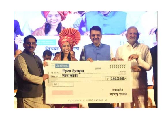 ग्रैंड मास्टर दिव्या देशमुख को शासन की तरफ से 3 करोड रुपए का पुरस्कार