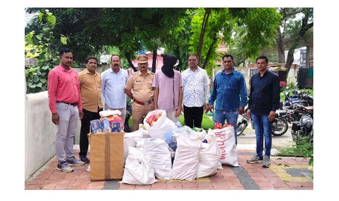 जानकारी के मुताबिक नागपुरी गेट के थानेदार उरलागोंडावार को गोपनिय जानकारी मिली की यास्मीन नगर में पान मटेरियल के दुकान पर अवैध रूप से प्रतिबंधित गुटखे की बिक्री की जा रही है. इस जानकारी के आधार पर डीबी स्क्वॉड के उपनिरीक्षक गजानन विधाते, सहायक उपनिरीक्षक अहमद अली, हेड कांस्टेबल संतोष यादव , जवान दानीश शेख, राहुल रोडे, सागर पंडित और आकाश कांबले के दल ने अन्न सुरक्षा अधिकारी गजानन गोरे को बुलाकर यास्मीन नगर के पान मटेरियल के दुकान पर छापा मारा. दुकान संचालक शेख अयान शेख इकबाल वहां मौजूद था. पुलिस के दल ने दुकान से 1 लाख 20 हलार 946 रुपए का माल जब्त कर लिया. शेख सुफियान फरार बताया जाता है. पुलिस ने आरोपियों के खिलाफ विविध धाराओं के तहत मामला दर्ज किया है.